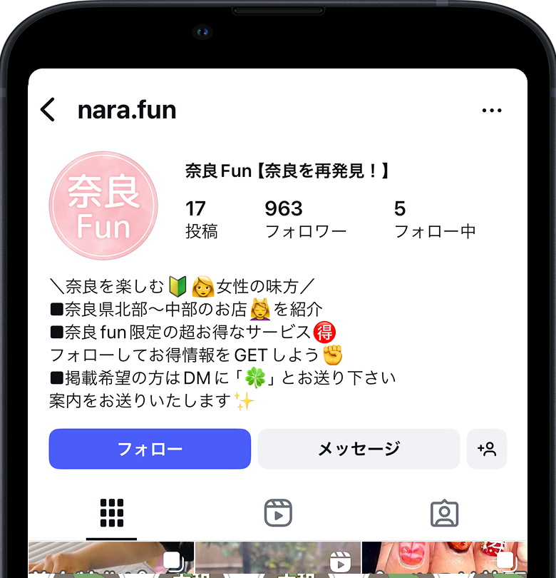 Instagramを中心に複数のSNSを活用し、奈良の情報を発信してきた当メディアは、現在総フォロワー5.5万人・月間200万PVという実績を誇ります。観光・グルメ・イベント情報など、多彩なコンテンツを通じて、多くのユーザーにリーチし、リアルな行動につながる影響力を持っています。SNSとWebの両軸で構築した「集客力のあるメディア」として、地元事業者や自治体からの掲載・タイアップの実績も多数ございます。