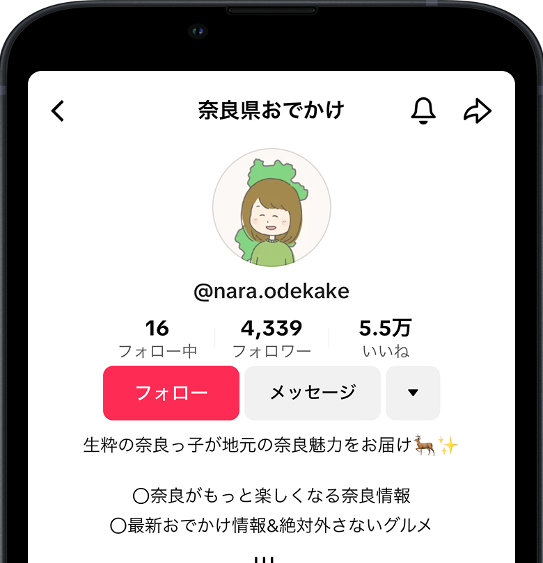 奈良のグルメ・観光・話題スポットをテンポよく紹介するTikTokメディア。直近10投稿の平均再生数は2万回を超え、若い世代を中心に県内外のユーザーへリーチ。SNS初心者にも分かりやすい“今行きたい奈良”を動画で発信中!